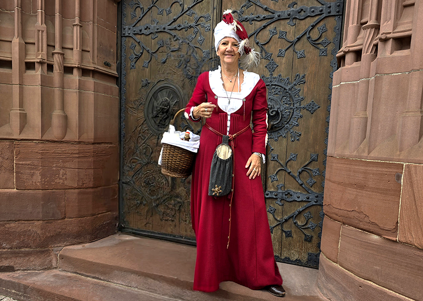 Gewandet und ausgerüstet mit Laternen führt Sie die Türmerin zu den Sehenswürdigkeiten der Stadt und unterhält Sie mit allerlei kurzweiligen Anekdoten aus dem mittelalterlichen Bretten.