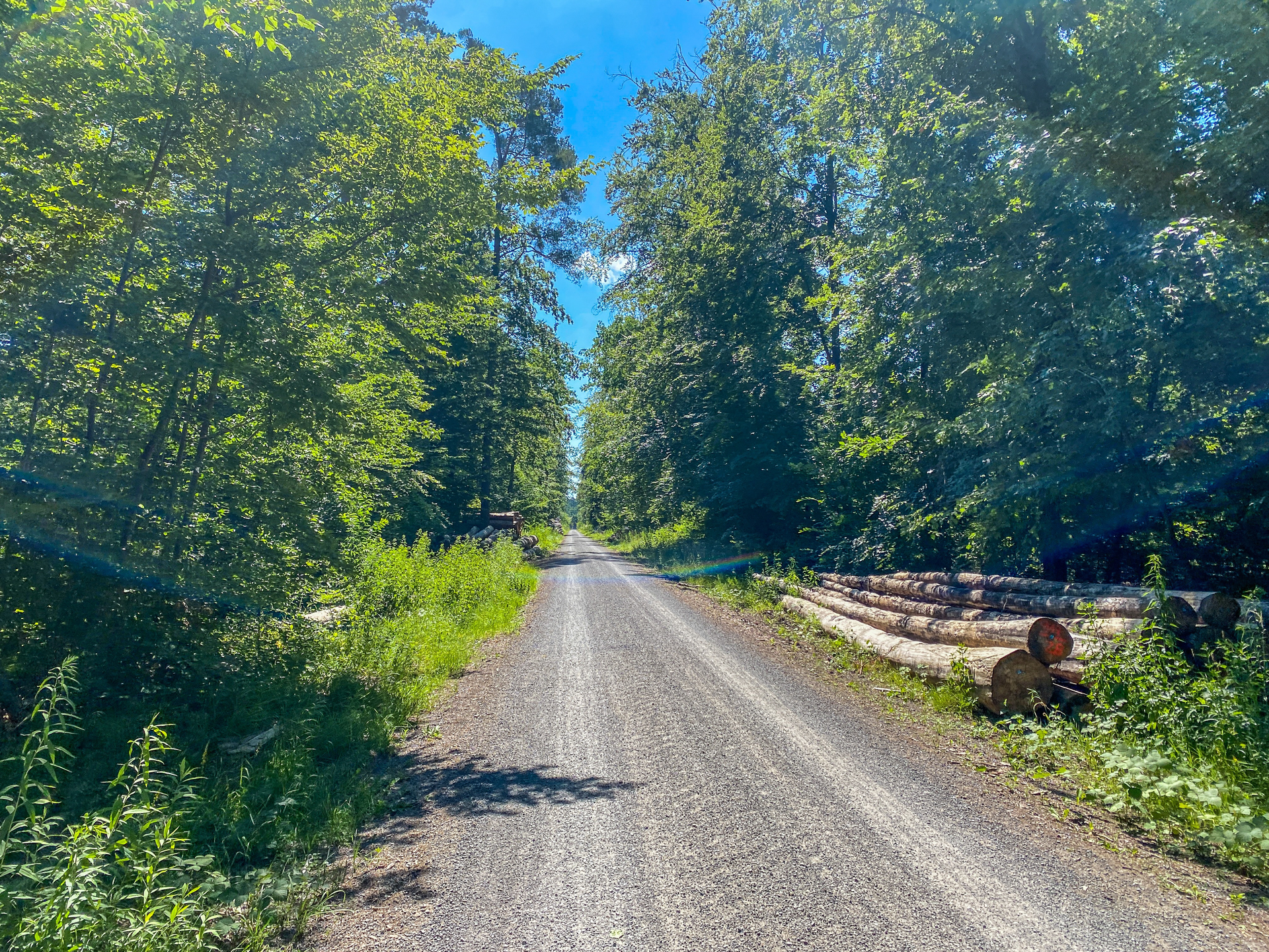 Du verlässt den Bahnhof am südlichen Ausgang und startest Richtung Rhein. Die ersten Kilometer begleitet Dich der Rhein, bevor Du in die grüne Lunge Mannheims, den Waldpark abbiegst. Nach dem Waldpark führt Dich der Weg durch Rheinau und anschließend in den Hirschacker und Dossenwald, wo Du das erste Mal Schotter unter Dir spürst. Das erste größere Highlight wartet im Anschluss auf Dich: das Schwetzinger Schloss. Mit den Palmen, den kleinen Eisdielen und den Sitzmöglichkeiten hast Du direkt das Gefühl, Du seist im Urlaub angekommen. Von hier aus geht es weiter durch den weitläufigen Schwetzinger Hardt, vorbei an Wildgehegen über einsame Schotterpisten.
