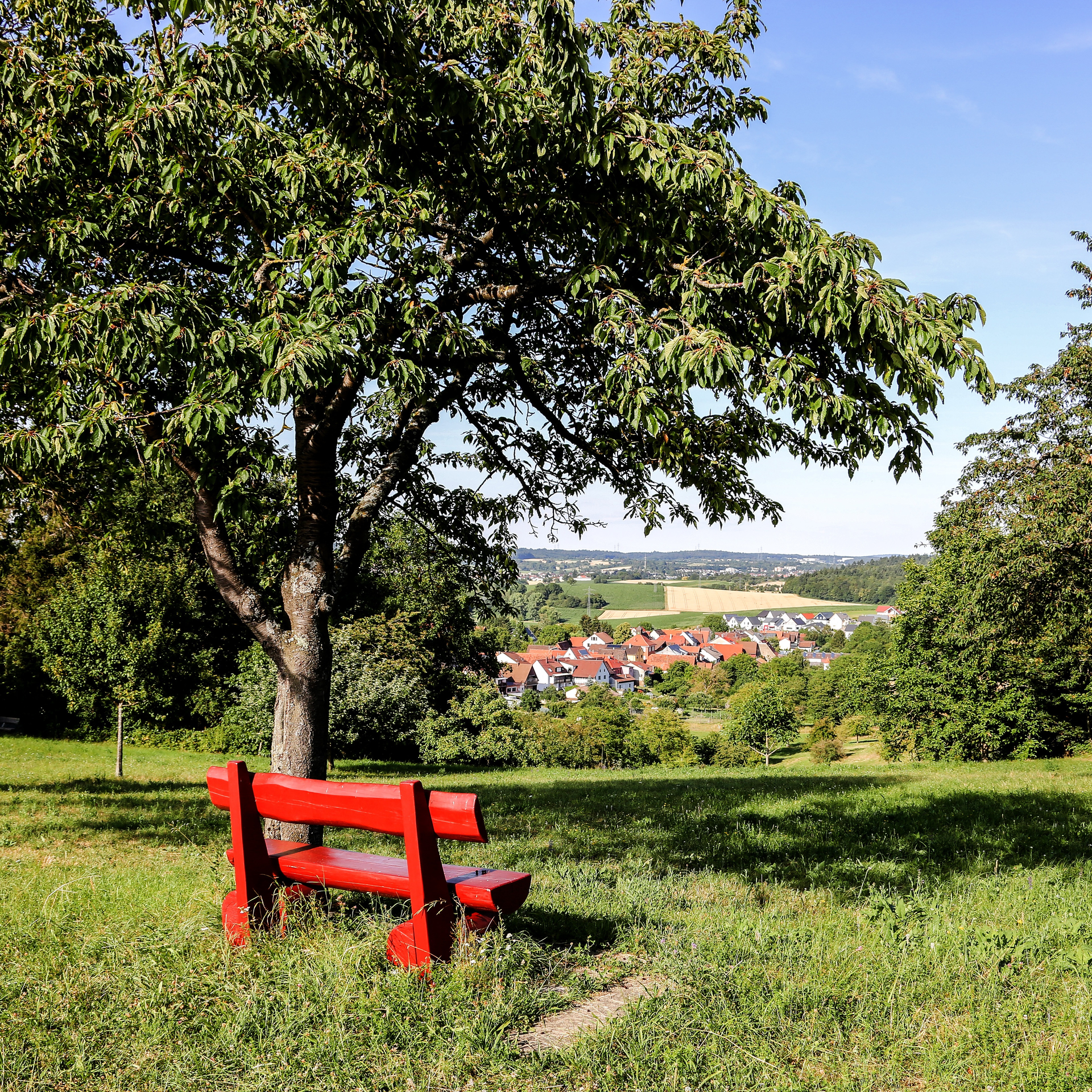 Abkürzung über den Teich und ein Stück Weg durch Dürrenbüchig: Folgen Sie der roten Markierung!