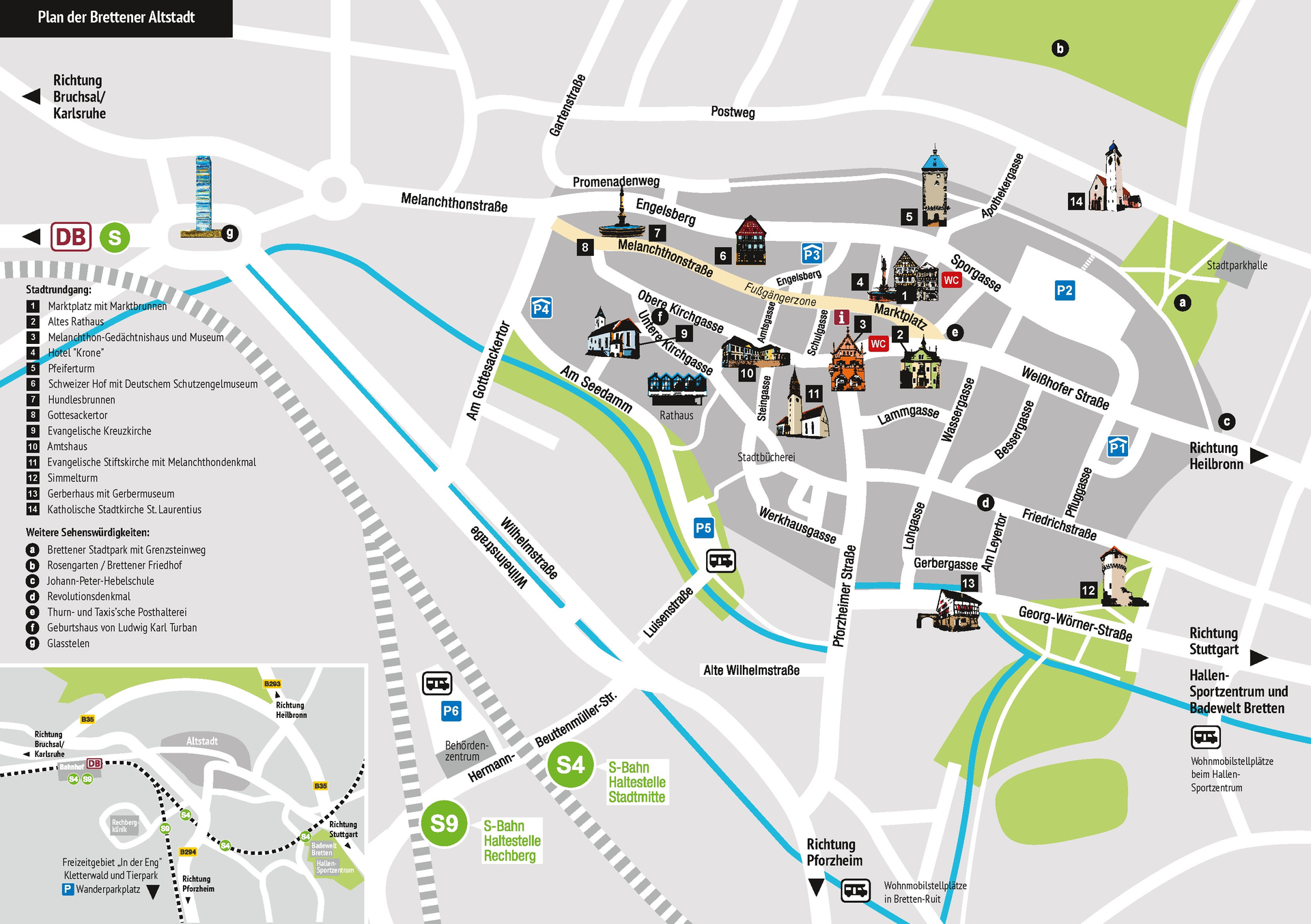 Entdecken Sie Bretten hautnah mit seiner wunderschönen Altstadt, dem einzigartigen Flair und der facettenreichen Geschichte. Der historischer Rundgang führt an folgenden Sehenswürdigkeiten vorbei: