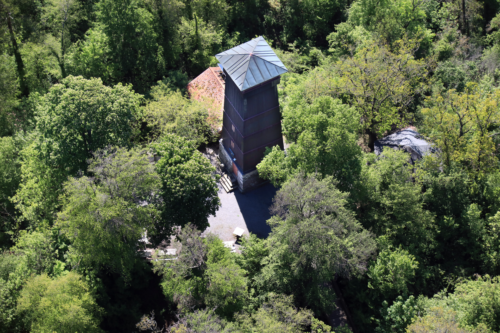 Es dauert nicht lange und wir sind am Sportgelände mit einer Infotafel angekommen. Von dort geht es zunächst rechts haltend am Waldsaum entlang und dann durch die Weinberge (gut befestigte Wege), der Beschilderung folgend aufwärts zu der im Wald gelegenen Eselsburg. Von der Burg selbst sind zwar nur noch die Burggräben vorhanden, dafür ist der Eselsburgturm an Sonn- und Feiertagen geöffnet und auch bewirtschaftet. An klaren Tagen bietet sich von oben ein faszinierender Ausblick mit Sicht zum Stuttgarter Fernsehturm, den Löwensteiner Bergen, zur Schwäbischen Alb, dem Schwarzwald und den Vogesen. Der geringe Eintritt lohnt sich allemal. Bei der Eselsburg selbst gibt es einen kleinen Spielplatz und Grillmöglichkeiten.