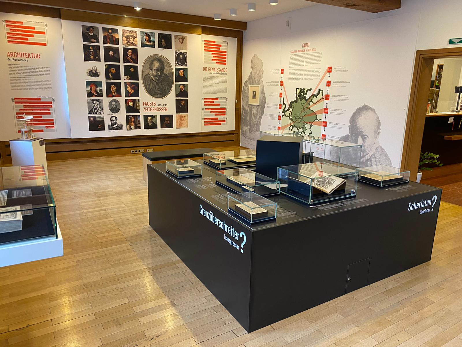 „Faust“ erweist sich in der chronologisch aufgebauten Ausstellung als unendlich wandelbar: In den unterschiedlichsten Kontexten hat man das faustische Dilemma um den Bund mit dem Bösen angesiedelt – und dennoch bleibt sich der Kern dieses Mythos in all seinen verschiedenen Adaptionen treu. Dass Faust mit dem Teufel paktiert hätte, kam jedoch erst nach dem Tode des historischen Faust um 1540 auf. Der Knittlinger Faust wurde zum Teufelsbündler stilisiert, war aber nach Auffassung der Forschung, wie das Faust-Museum über die Quellen dokumentiert, ein Mensch, der seiner Zeit weit voraus war: Ein charismatischer Astrologe, Heilkundiger, Wissenschaftler und Alchemist. Der historische Faust starb wohl im Rahmen eines missglückten alchemistischen Experimentes. Was ihn mit dem Faust der Legende, dem Faust Goethes und all der anderen Interpretationen verbindet, sind aber vor allem die Lust und die Neugier, und wohl auch der innere Drang, die Grenzen zu überschreiten.
