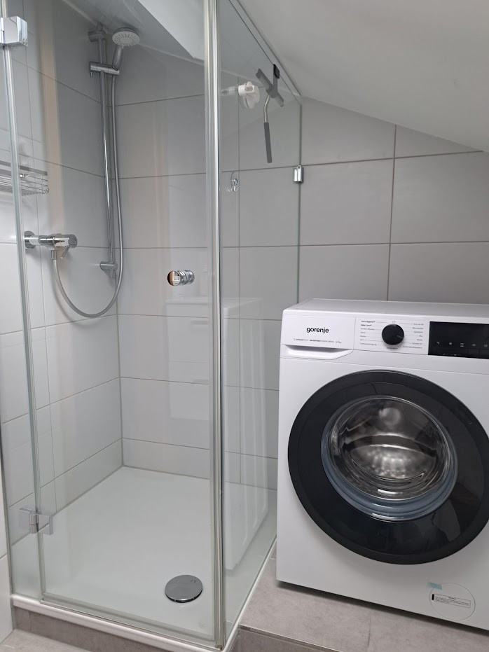 Wohnung im DG (ca.55 qm) mit großem Westbalkon. Küche (voll ausgestattet) incl. Spülmaschine, Mikrowelle, SENSEO Kaffeepadmaschine, Wasserkocher, Toaster und Kühl-Gefrierschrank. 1 Schlafzimmer als Doppel- o. Zweibettzimmer, 1 EZ, 1 Bett im Wohnzimmer, blickgeschützt in separater Nische, Wohn-Esszimmer mit grossem TV, Dusche/WC mit Tageslicht, Waschmaschine, Wäscheständer. Incl. Bettwäsche und Handtücher.