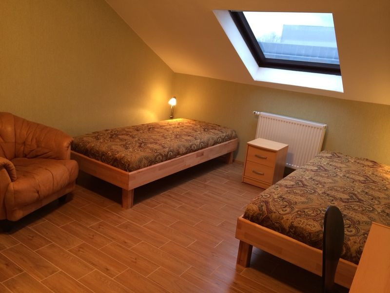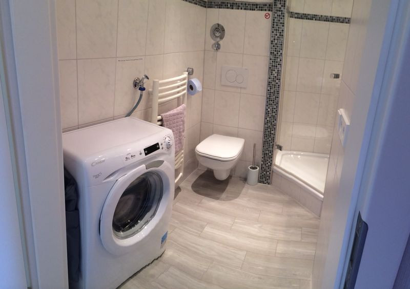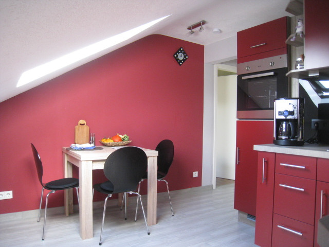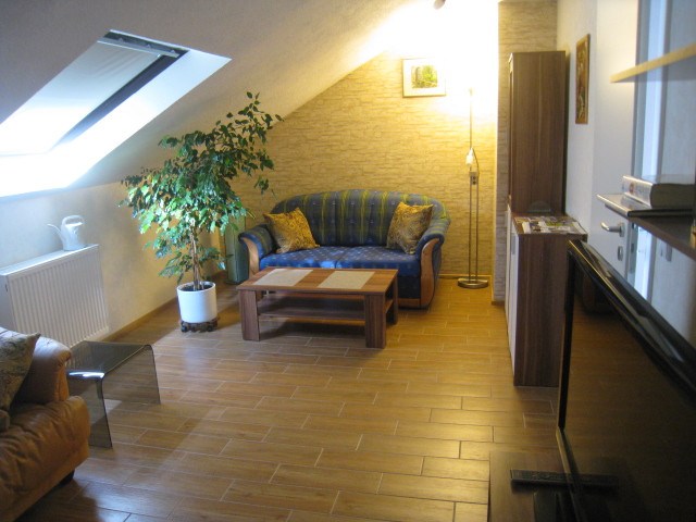 Komplett neu renovierte helle 2-Zimmer DG-Wohnung. Schlafzimmer, Wohnzimmer mit Schlafsofa, gut ausgestattete Küche und schönes Bad mit Dusche, Bahnhofsnähe, 1 km zur Stadtmitte.