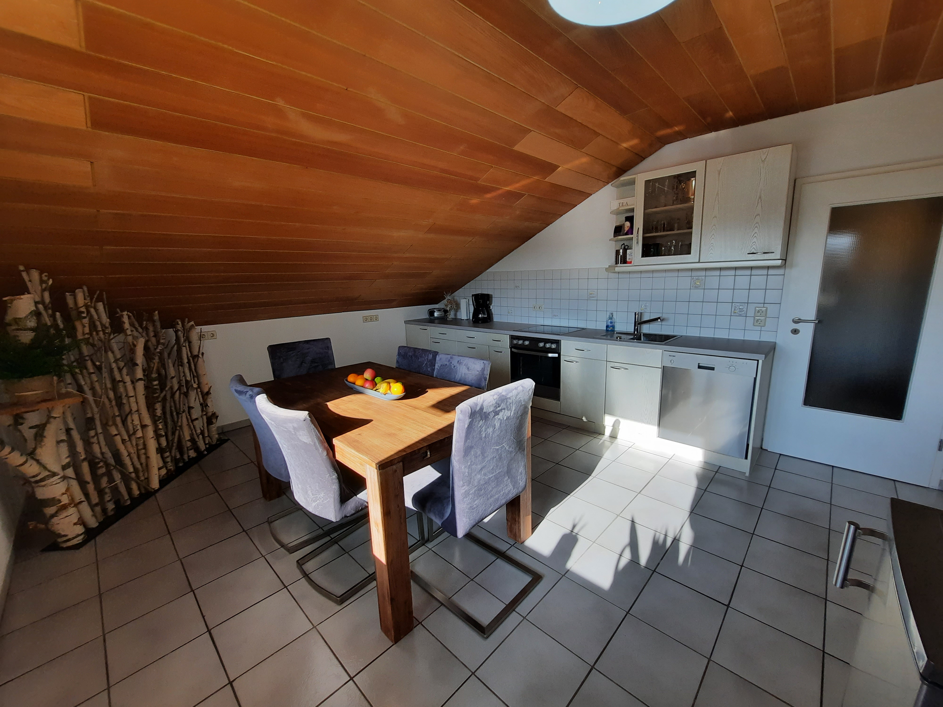 Die Ferienwohnung mit 85 qm verfügt über zwei Schlafzimmer mit je einem Doppelbett, zwei Flachbildschirmen, einer Sitzgelegenheit, einer voll ausgestatteten Küche mit Backofen, Herd, Kühlschrank, Spülmaschine, Kaffeemaschine und Kochutensilien sowie einem Bad mit Dusche und Badewanne, Gäste- WC und einer Diele mit Garderobe. Für unsere kleinen Gäste gibt es einen Spiele- und Bücherschrank. Vom Balkon können Sie die Ruhe und Aussicht genießen mit einem Weitblick auf Eppingen.