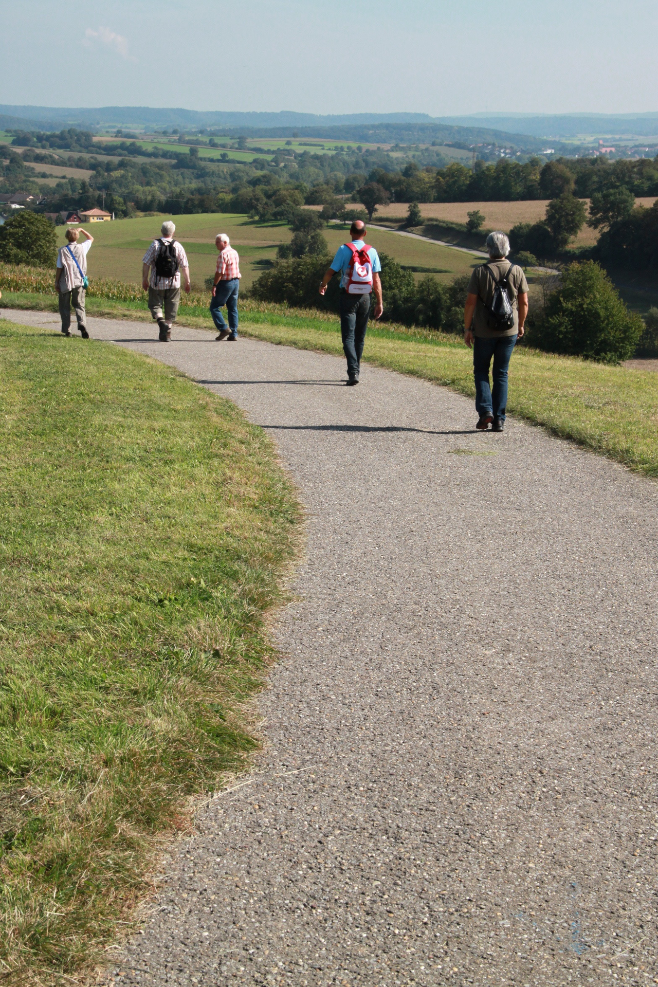 Wenn man die kurze Tour wählt, biegt man links ab, folgt der Markierung auf aussichtreichem Höhenweg bis zum Kreisel, wo beide Varianten wieder zusammentreffen.