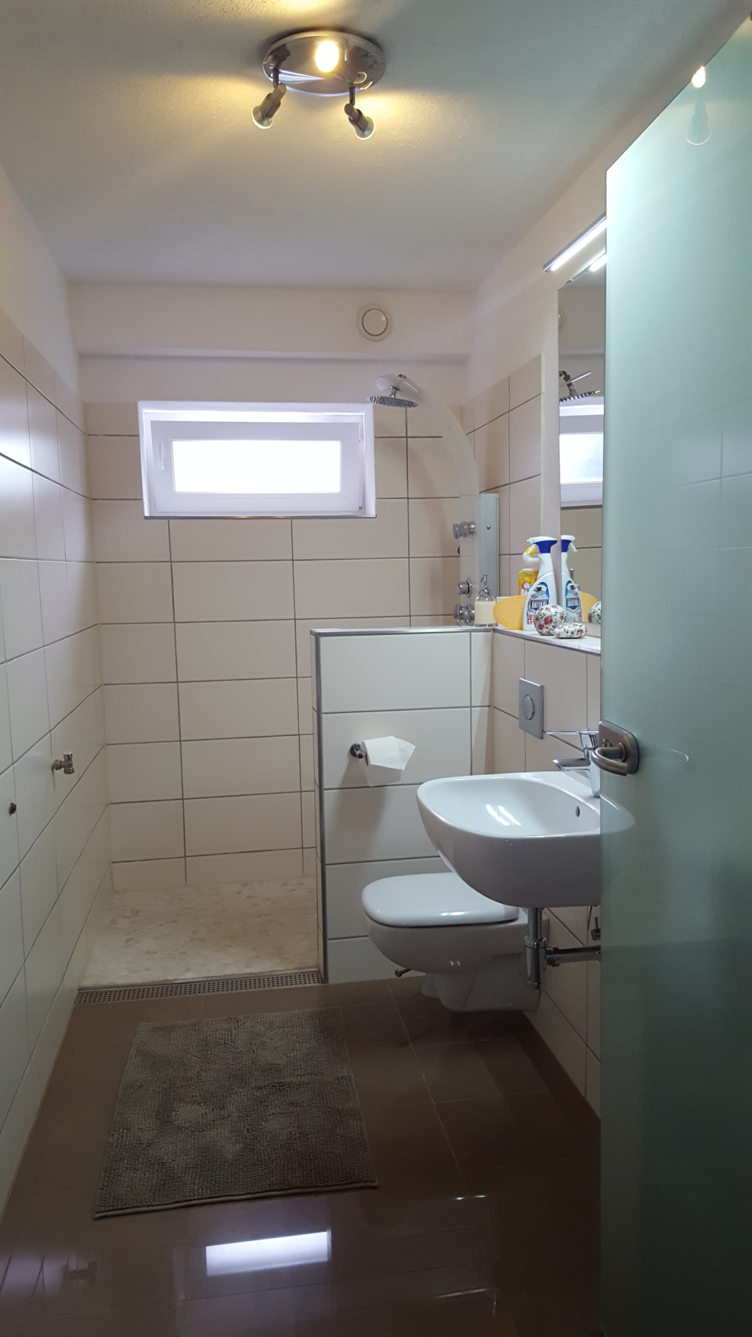 Im Bad finden sich eine bodenebene Regendusche.