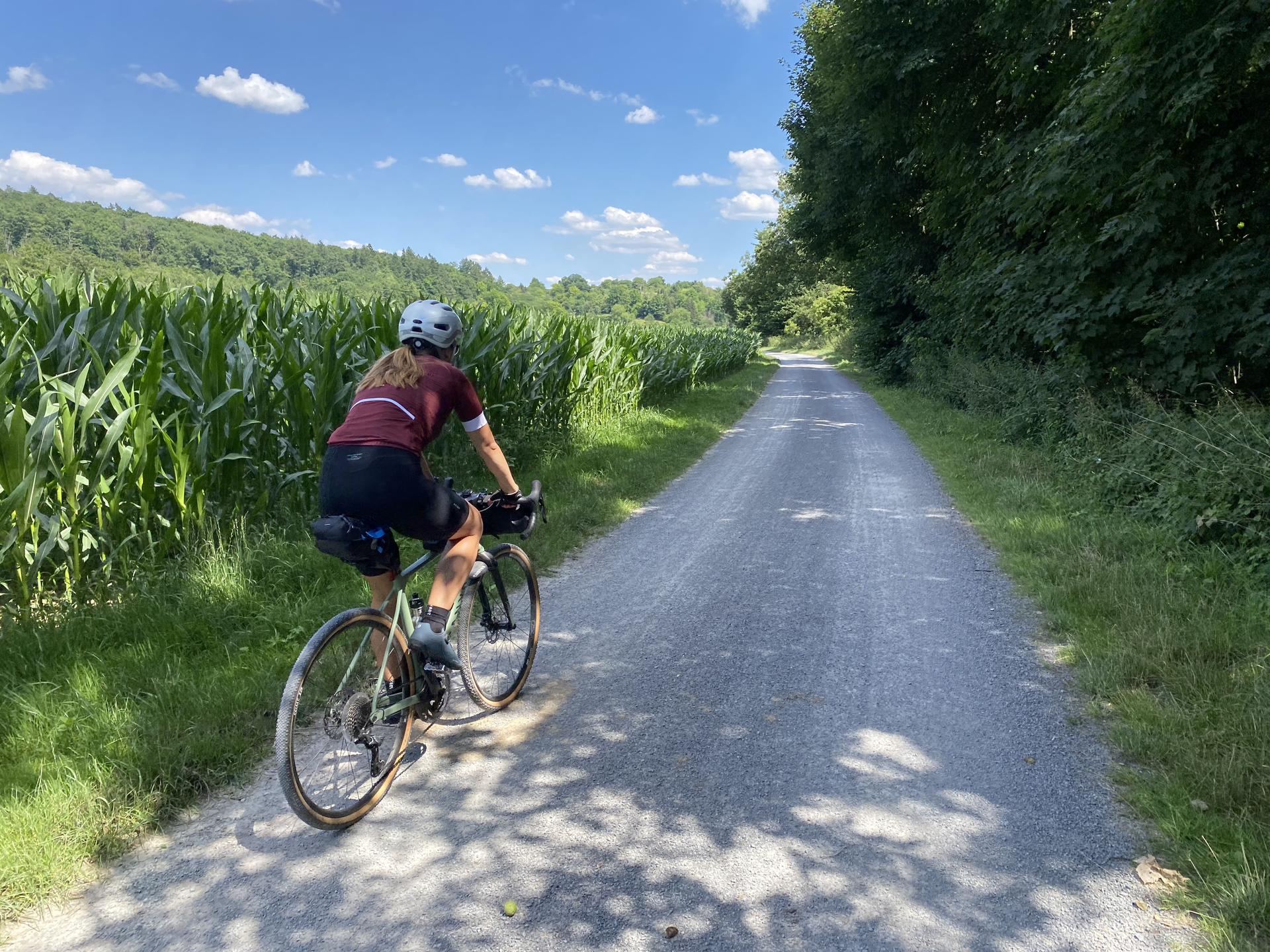 Los geht's in Bruchsal, dem gemütlichen Städtchen am Rande des Kraichgaus. Vom Bahnhof aus geht’s zum Aufwärmen erstmal locker entlang der Bruchsaler Straße. Nach der Überquerung der Straße fühlst Du den ersten Schotter unter Deinen Reifen und die ersten Höhenmeter in Deinen Beinen. Das erste Highlight mit Blicken bis in die Pfalz warten direkt zu Beginn der Tour auf Dich: der Michaelsberg! Siehst Du das auch! Du hast gerade einen der neu ausgeschilderten Hügel-Pässe erklommen. Halt kurz an, mach ein Pass-Selfie und pack es an die Wall-of-Fame, bevor Du weiterdüst.
