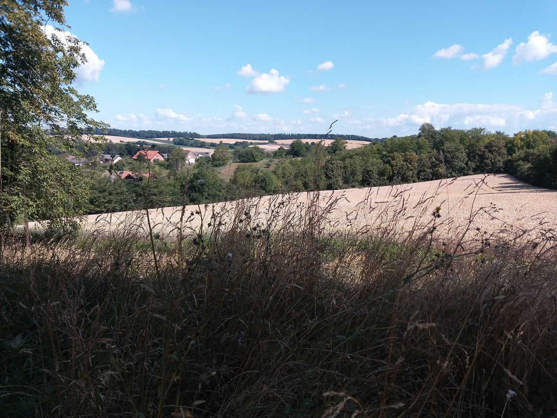 - Möchte man aber noch einen zusätzlichen Ausblick bekommen, biegt man bei der Rastbank links ab und läuft weiter den Hügel hinauf. Dort lohnt es sich nun einen Blick zurück zu werfen. An dieser Stelle hat man einen herrlichen Weitblick und sieht bei gutem Wetter bis zum Schwarzwald und zu den Pfälzer Bergen.