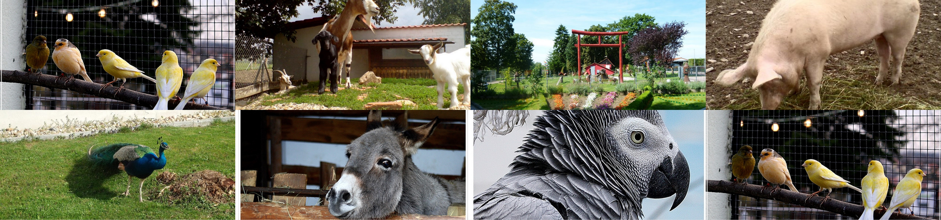 Besucher können neben Volierenreihen mit Sittichen und Fasanen auch Meerschweinchen, Kaninchen, Zwergziegen, Esel, Ponys und Damhirsche entdecken. Ebenfalls im Park befinden sich zwei Teiche mit zahlreichen Wasservögeln.