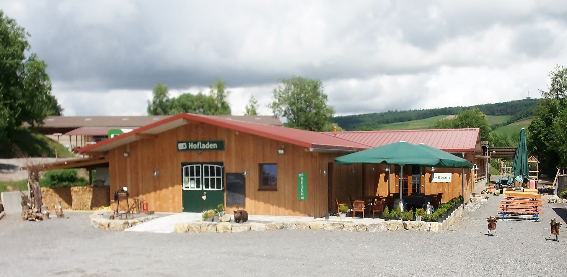 Unser Angebot im Hofladen ist vielfältig: hausgemachte Aufstriche und Eingelegtes, frisches Gemüse und Obst, regionale Wurst- und Käsespezialitäten, fangfrischer Fisch sowie Speisen und Getränke aus dem Besen. Täglich backen wir Brot in unserem Holzsteinbackofen. Gerne bieten wir Ihnen den hauseigenen Wein aus dem Besen auch für daheim an. Unsere Weine können wir auch versenden! Ebenso findet man noch das ein oder andere Mitbringsel für Freunde oder sich selbst: handgemachte Dekoartikel und Selbstgenähtes aus der Region.