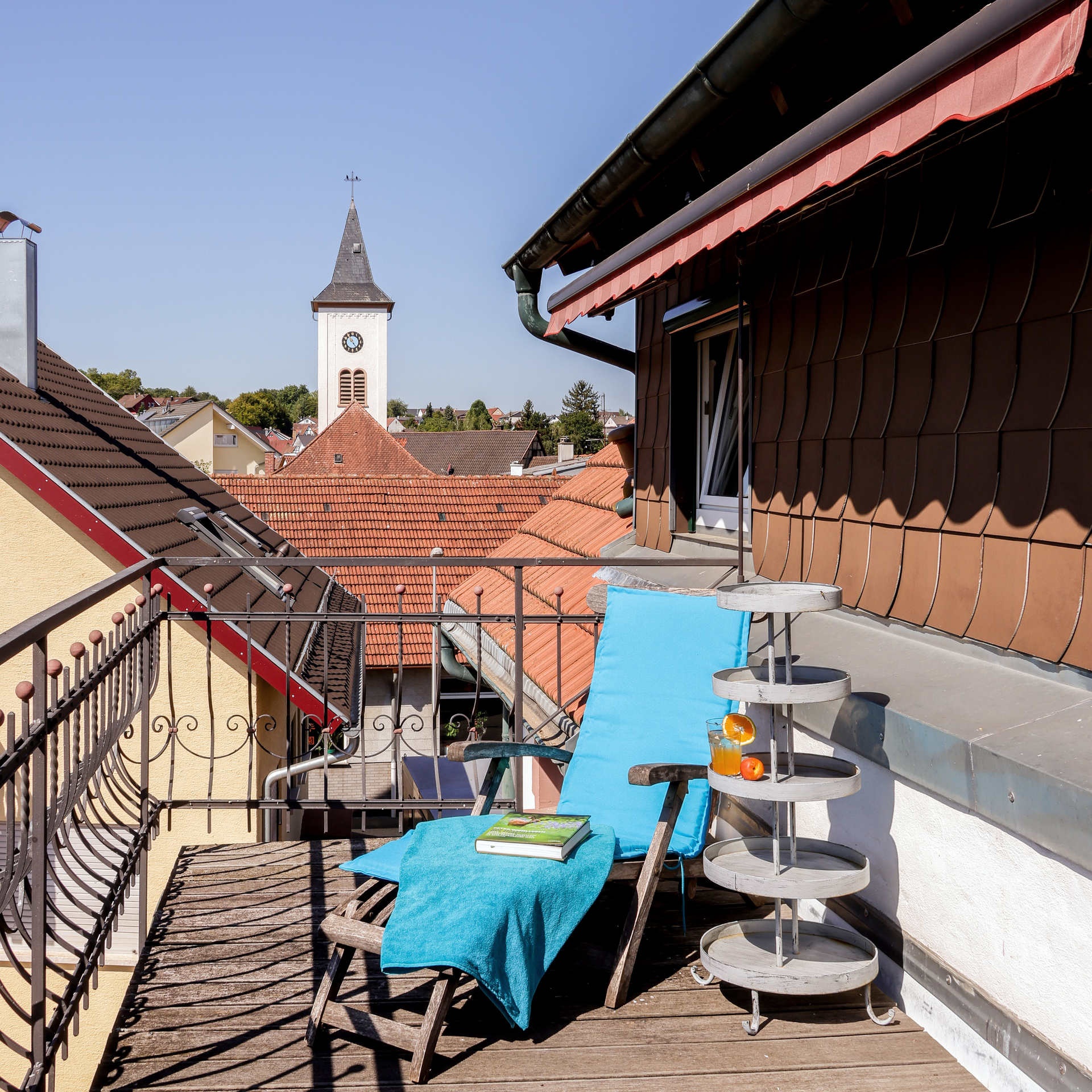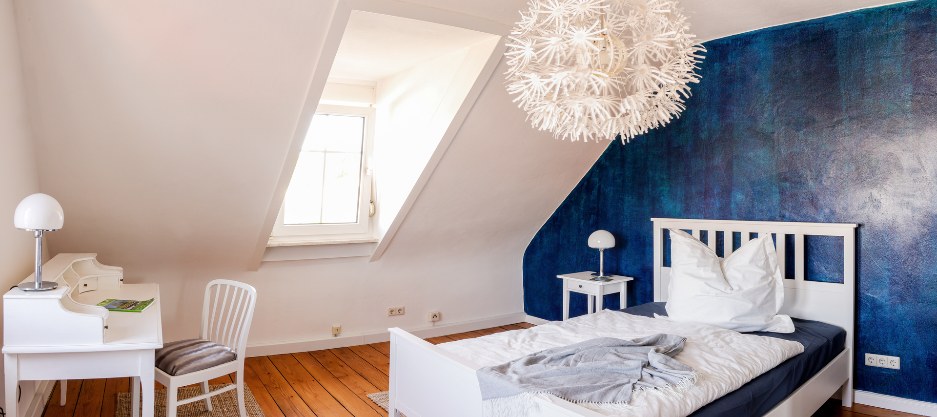 Die helle 120qm große Ferienwohnung befindet sich im 2.OG mit Blick in die Natur.