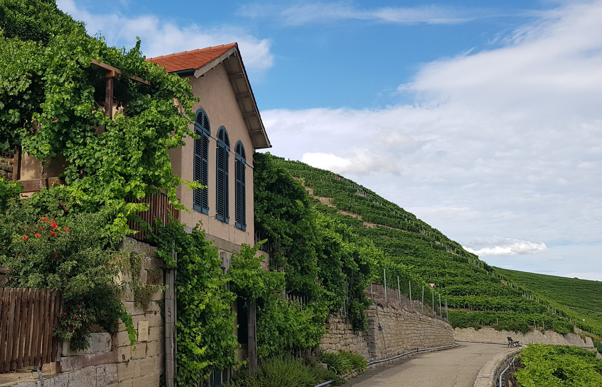 Die Wanderung auf dem Käsbergrundweg führt Sie in eine spektakuläre Kulturlandschaft. Auf einer Länge von rund 5 km erschließt der Erlebnisrundweg den von unzähligen Trockenmauern gegliederten Hang der markanten Mundelsheimer Neckarschleife, der ein natürliches Amphitheater bildet. Im Weinort Mundelsheim durchqueren Sie den historischen Ortskern mit seinen Fachwerk- und Torhäusern. Früher prägte der Wein- und Obstbau in fast allen Familien Mundelsheims den Alltag und trug zum Familieneinkommen bei. Die Handwerke rund um den Weinbau können Sie im Museum in der Stiftsscheuer (nach Voranmeldung) kennenlernen. Auf dem Weg zum Aussichtspunkt Käsbergkanzel tauchen Sie auf schmalen, unbefestigten Pfaden in die Welt der steilen Weinbergterrassen ein. Kalksteinmauern, Staffeln, Felsen und Sinterquellen, auf der Hochfläche auch Streuobstwiesen sind Ihre Begleiter. Die Käsbergkanzel bietet Ihnen einen Rundblick über die gesamte Mundelsheimer Neckarschleife und lädt zu einem Picknick ein.