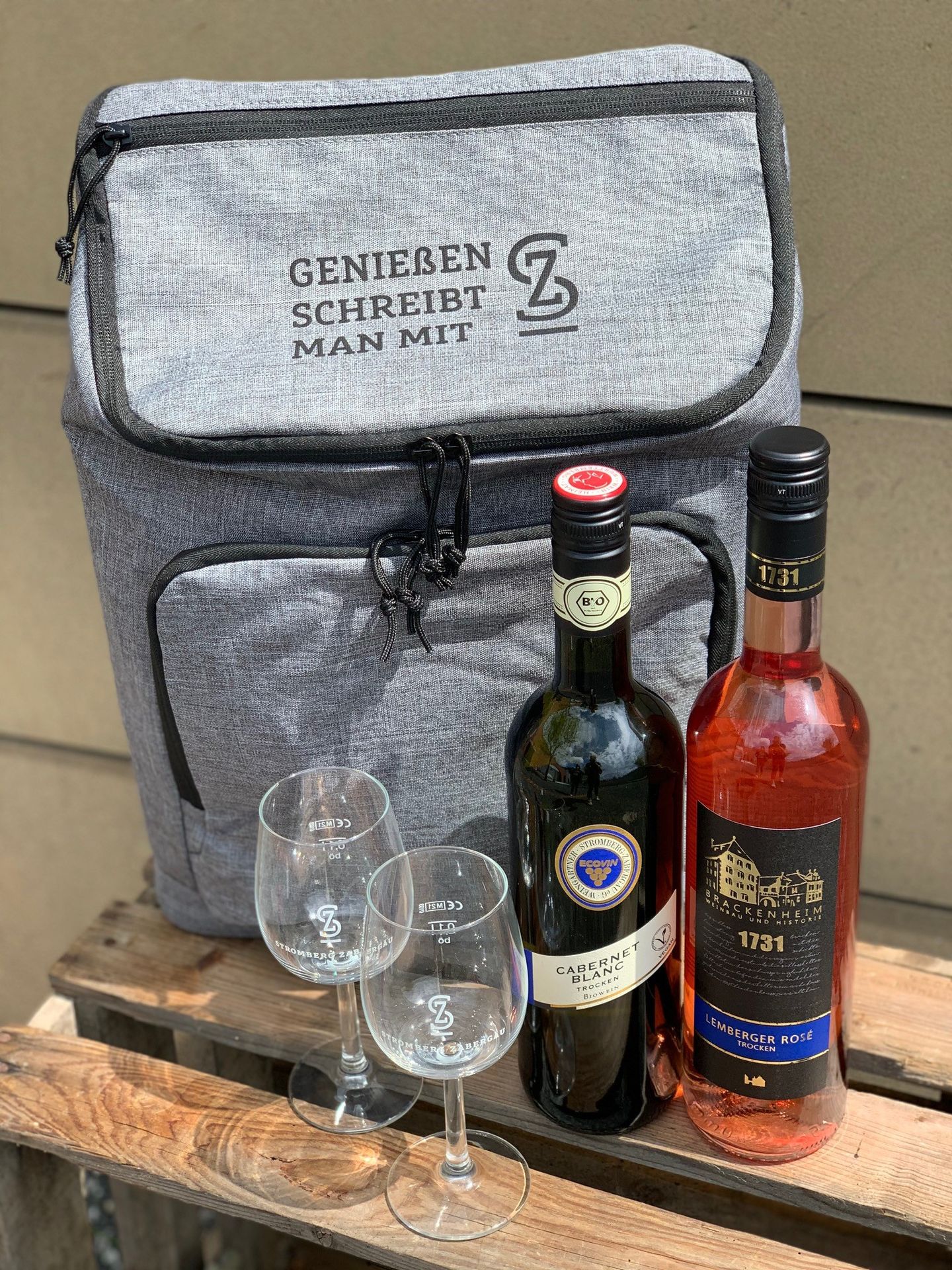 Die praktische Rucksacktasche können Sie sich individuell am Verkaufsautomaten der Weingärtner Stromberg-Zabergäu befüllen und wird so zum perfekten Begleiter für ein Picknick in den Reben.
