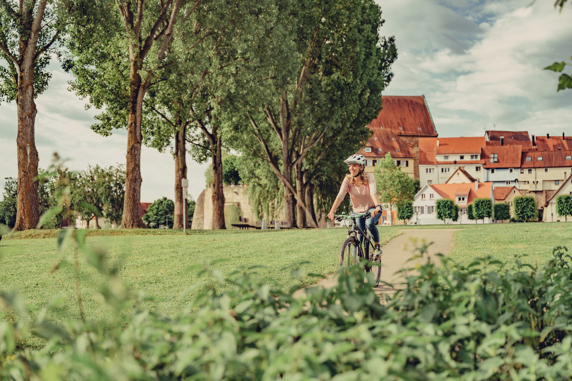 In Kirchheim am Neckar, Neckarwestheim und Lauffen säumen herrliche Uferabschnitte und beeindruckende Flussblicke den Weg. Besonders stimmungsvoll ist die Fahrt vorbei an der Neckarinsel bei Lauffen – mit Blick auf die Regiswindiskirche und Spuren des Dichters Friedrich Hölderlin. Durch Felder und Reblagen geht es weiter Richtung Nordheim.