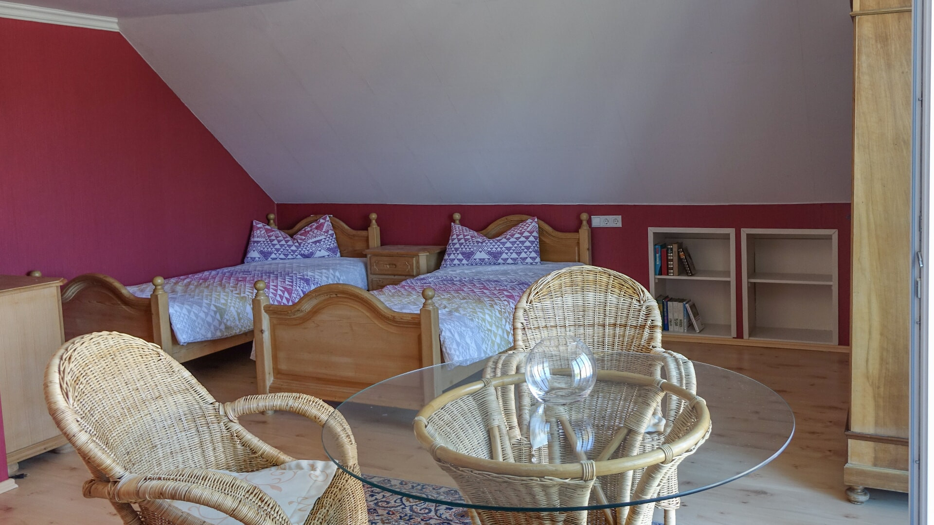 2 Betten, OG, 57 m², Küche, Wohn-/Esszimmer, "Schlaf-Schatzkammer" (Kuschelatmosphäre durch niedrige Deckenhöhe), Balkon