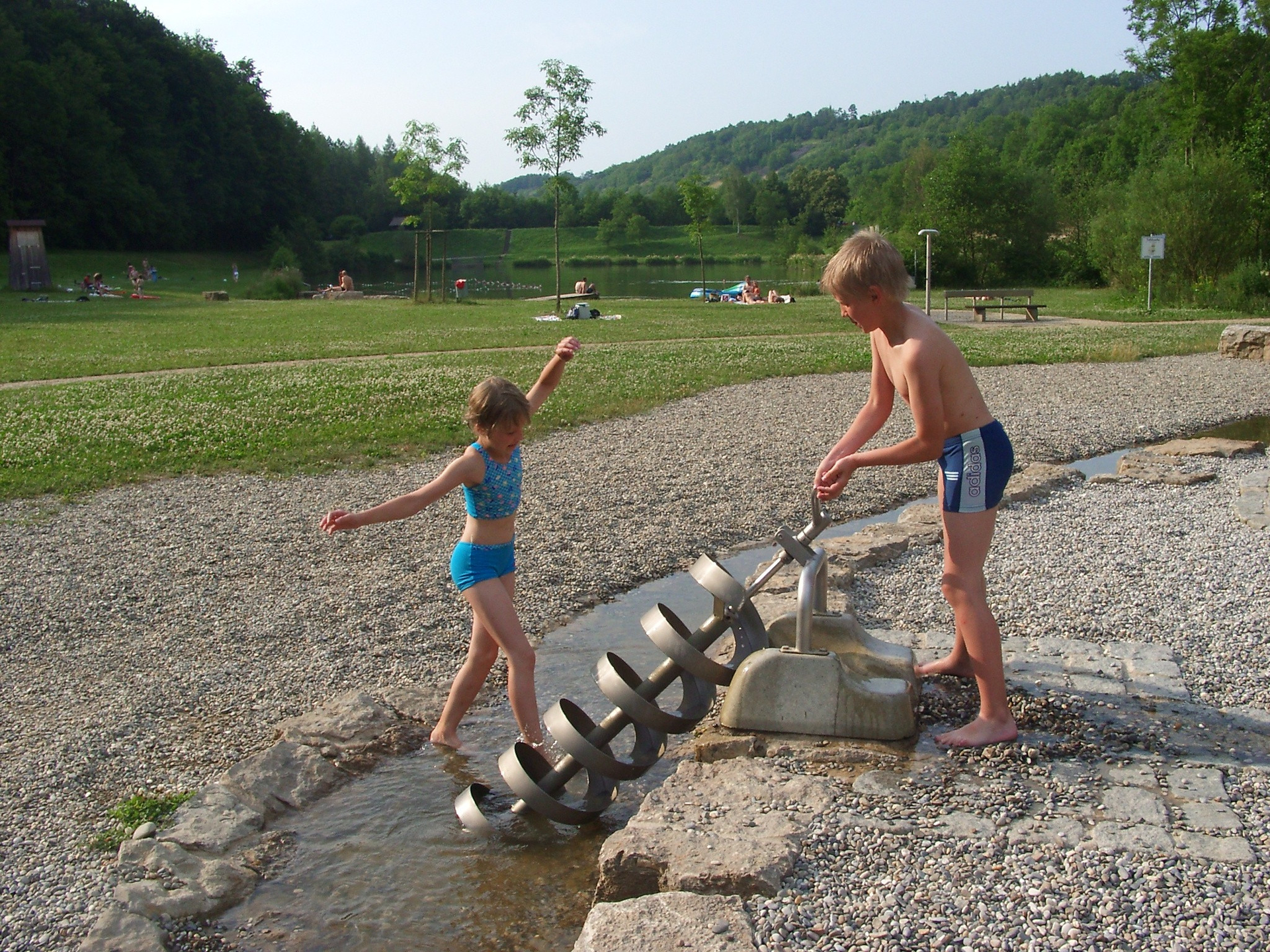 Am Ortsrand von Münster kommen Sie direkt zum bereits bestehenden Badesee, der rundherum Liegewiesen in schattigen und sonnigen Zonen bietet. Ein kleiner, eigens angelegter Kiesstrand vermittelt südliche Urlaubsgefühle. Ein Wasserspielplatz und Barfußpfad sowie ein Kneipp-Becken laden nicht nur Kinder zum fantasievollen Planschen und Spielen ein.