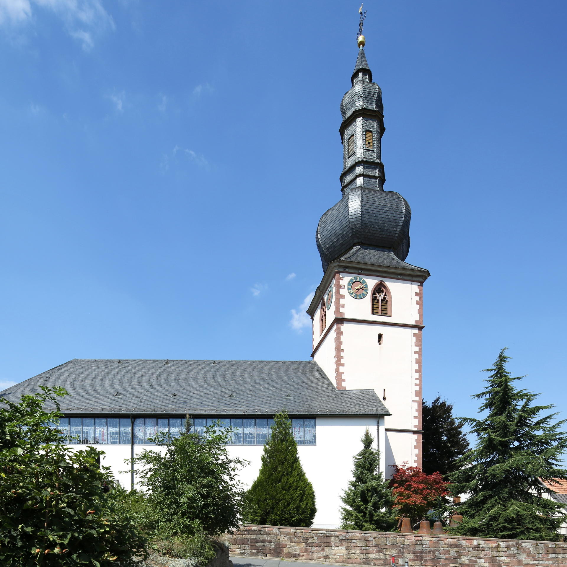 Gotischer Turm von 1329, Neubau der Kirche 1960