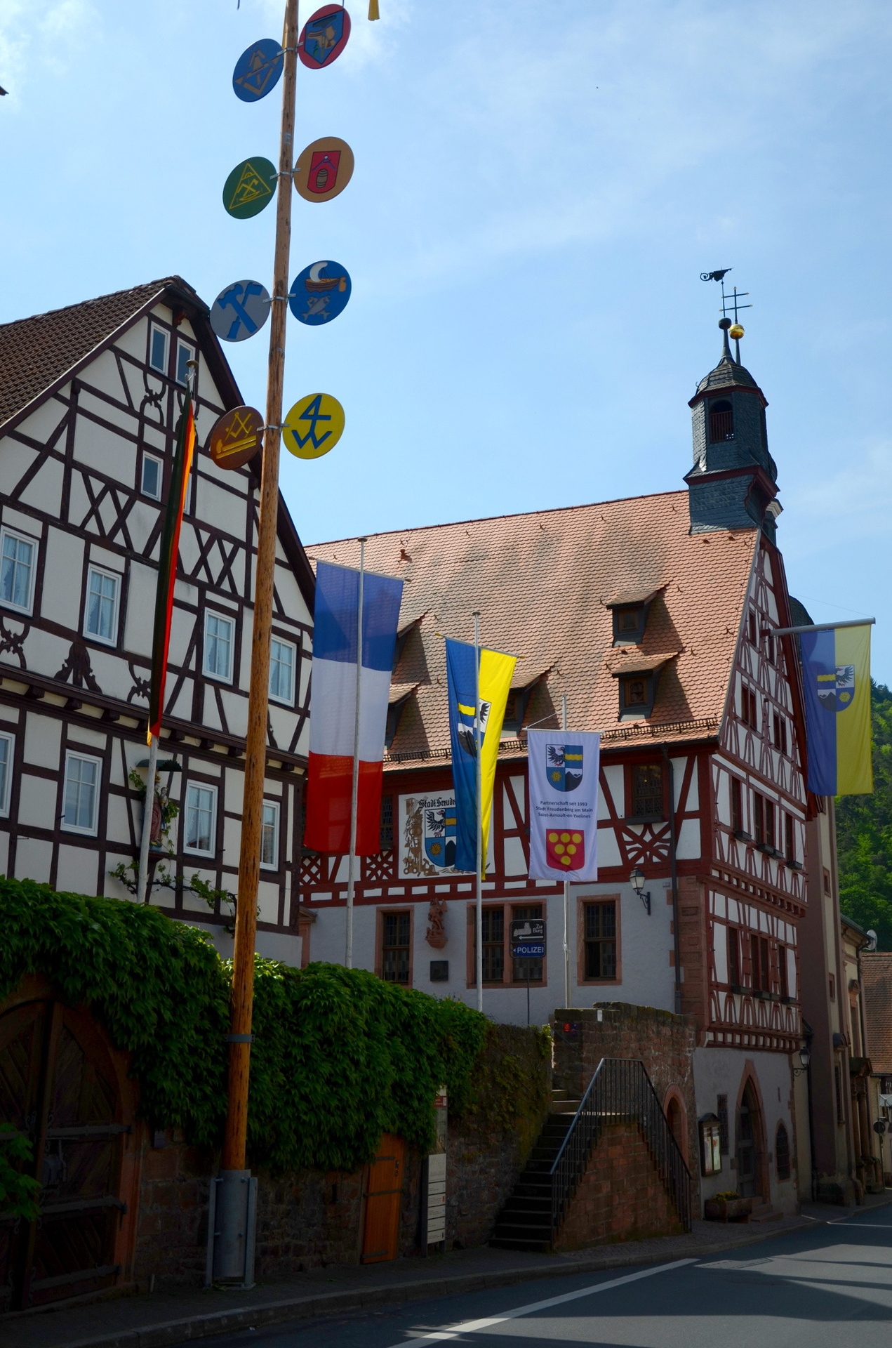 Im Anschluss folgt ein kurzer Abstieg Richtung Maintal und dann wanderst du in östlicher Richtung auf dem Mainwanderweg wieder zurück nach Freudenberg. Dort kannst du noch das sehenswerte Rathaus, den Friedhof mit der historischen Laurentiuskapelle und die Amtshaus-Galerie besuchen.