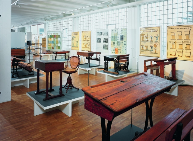 Leitmotiv der ständigen Ausstellung „Das Klassenzimmer“ ist die Auseinandersetzung mit dem Schulmöbel, das unmittelbare Auswirkung auf das Wohlbefinden des Kindes hat. Das Museum zeigt einen internationalen Querschnitt der Geschichte und Entwicklung von Schulmöbeln vom Ende des 19. Jahrhunderts bis heute. Erinnerungen an die eigene Schulzeit werden wach, wenn genau das Schulmöbel wieder entdeckt wird, das nach der Schulzeit aus dem Bewusstsein entschwand.