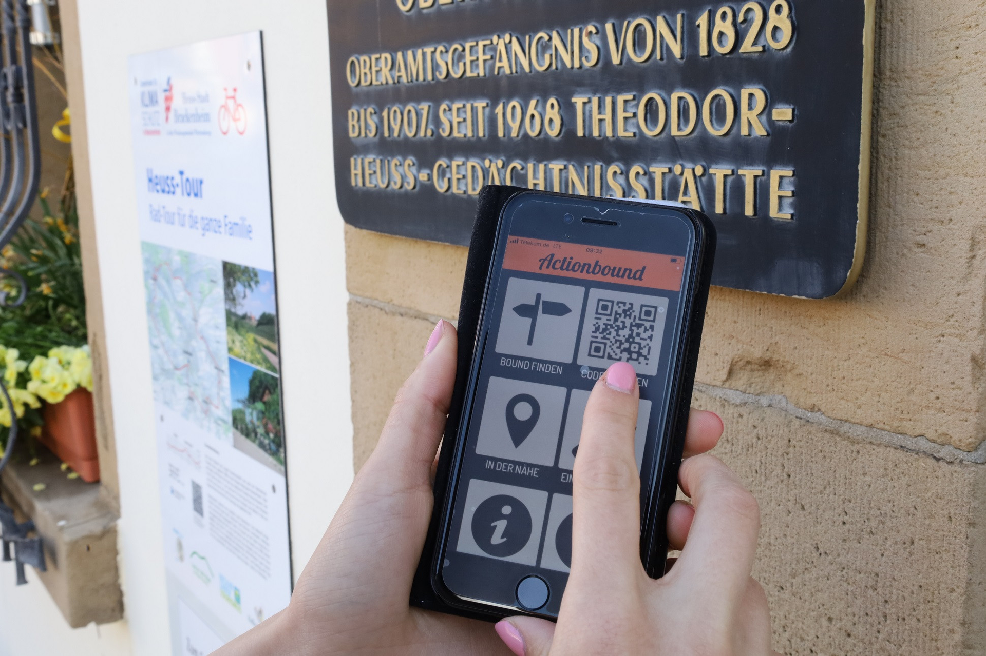 Es handelt sich um einen Bound, der eine kleine Rätseltour darstellt. Sie benötigen lediglich Ihr Smartphone und die "Actionbound" App. Dort finden Sie die bereits angelegte Tour, indem Sie die Begriffe "Brackenheim" oder "Theodor Heuss" in die Suchleiste eingeben oder den QR-Code am Theodor Heuss Museum scannen.