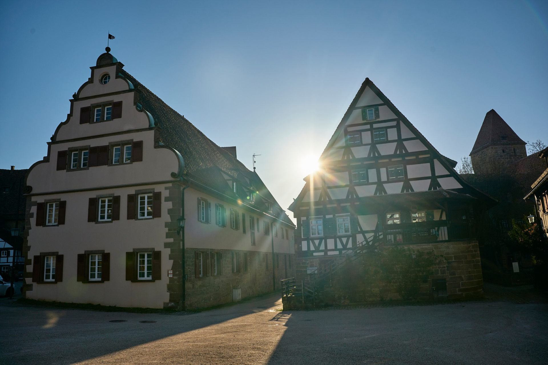 Neben dem Kloster haben sich hier in Maulbronn auch die Wirtschaftsgebäude seit der Zeit der Zisterziensermönche erhalten, Werkstätten und Speicher, Wohnhäuser, Mauern und Türme. Fachwerkbauten vom späten Mittelalter bis ins 19. Jahrhundert reihen sich dicht an dicht zu einer ganzen Klosterstadt.