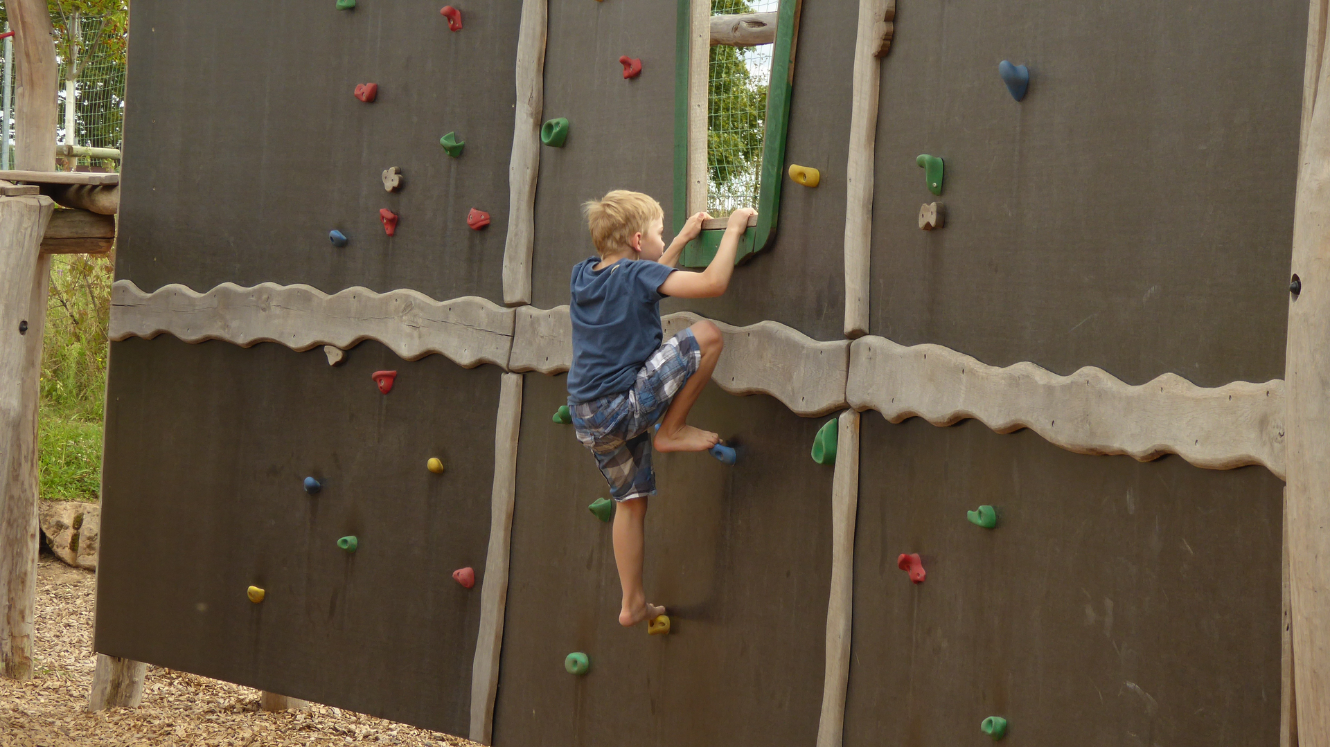 Der naturnahe Spiel- und Bewegungsplatz ist für Schulkinder angedacht. Dieser bietet Kindern viel Raum für freies und kreatives Spielen und verbessert nebenbei noch Motorik und Beweglichkeit. Man kann hier Klettern, Hangeln und Balancieren und sich so richtig austoben.