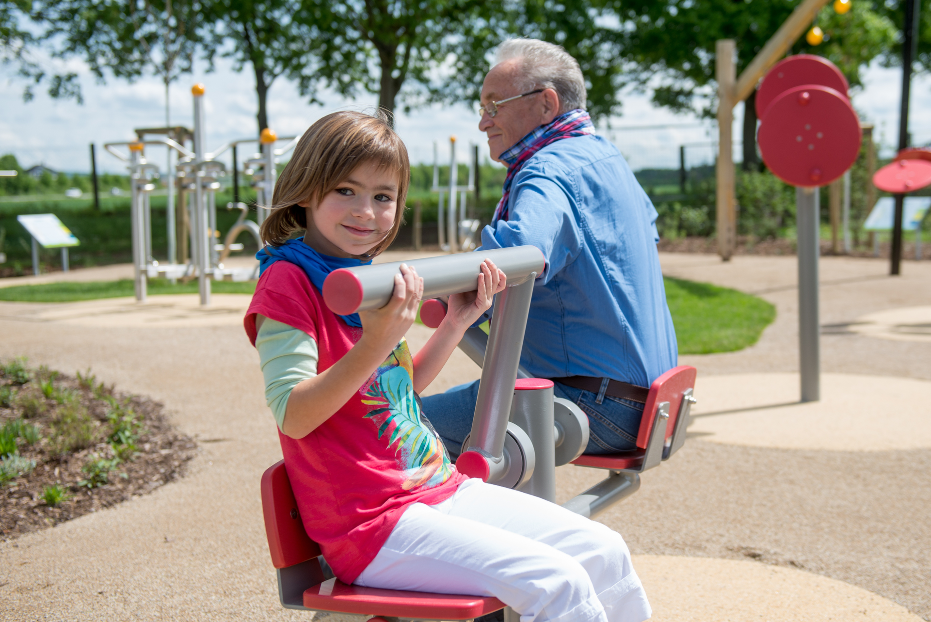Der Bewegungsparcours für Jedermann bietet, wie der Name schon sagt, allen Generationen die Möglichkeit, Beweglichkeit, Koordiantion, Ausdauer und Kraft zu stärken. Verschiedene Schwierigkeitsstufen und leicht verständliche Anleitungen erklären die Geräte und sorgen dafür, dass der Spaßfaktor im Vordergrund steht.