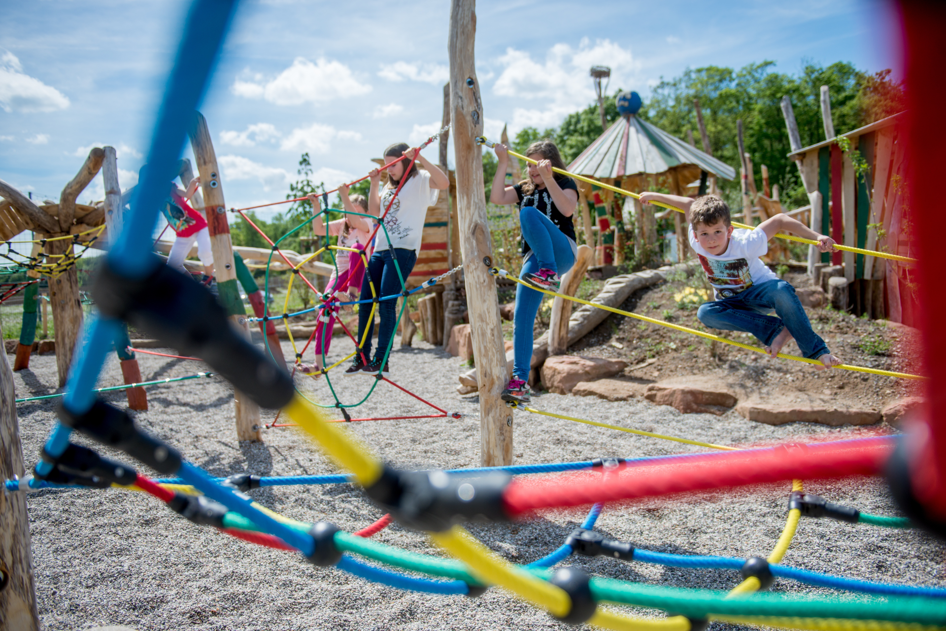 Der naturnahe Spiel- und Bewegungsplatz ist für Schulkinder angedacht. Dieser bietet Kindern viel Raum für freies und kreatives Spielen und verbessert nebenbei noch Motorik und Beweglichkeit. Man kann hier Klettern, Hangeln und Balancieren und sich so richtig austoben.