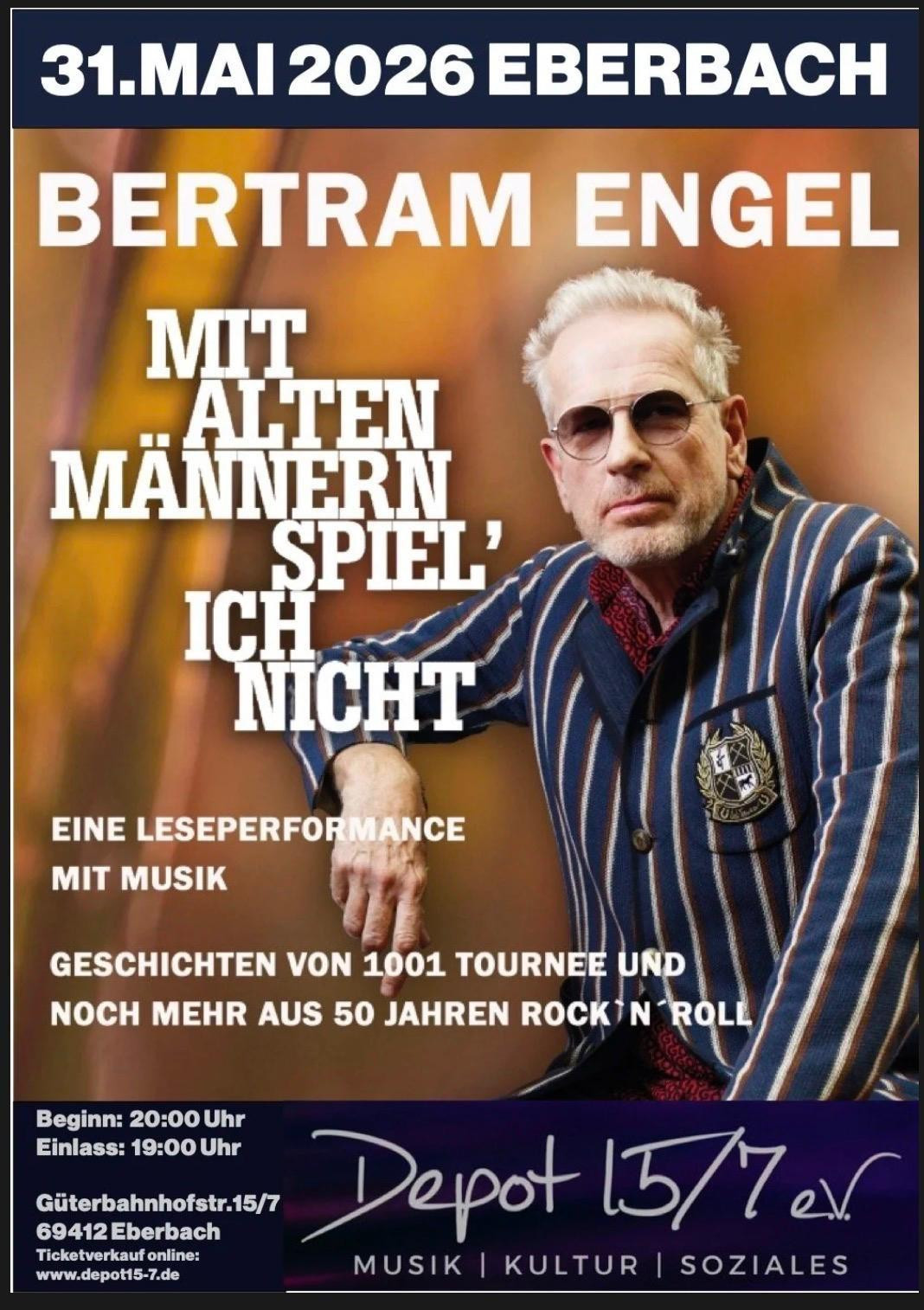 Tickets online unter Lesung - Bertram Engel | Mit alten Männern spiel' ich nicht - Depot 15/7 in Eberbach - 31.05.2026