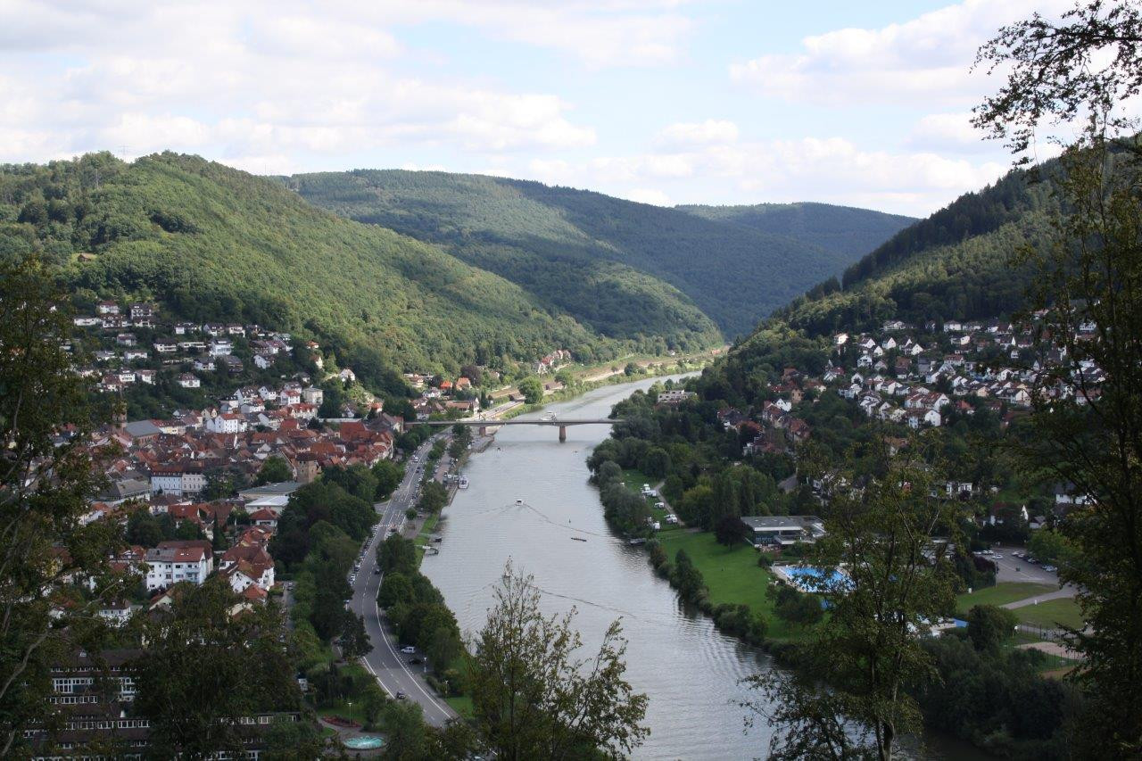 Von dem romantischen, 220 m ü NN gelegenen Aussichtspunkt "Felsenquelle", kann man einen einzigartigen Ausblick über die Innenstadt von Eberbach und das Neckartal (stromaufwärts) genießen. Quelle: Broschüre "Schöne Aussichten Eberbach am Neckar".
