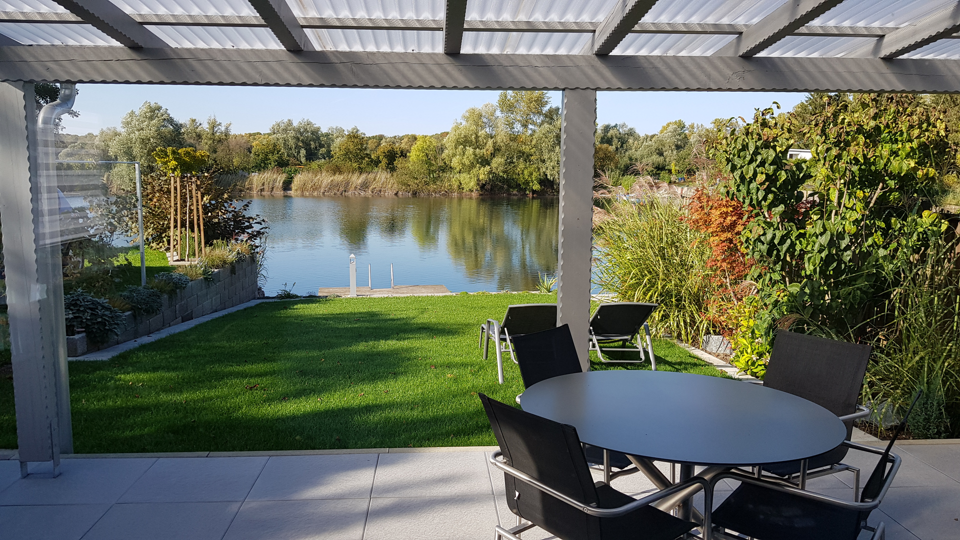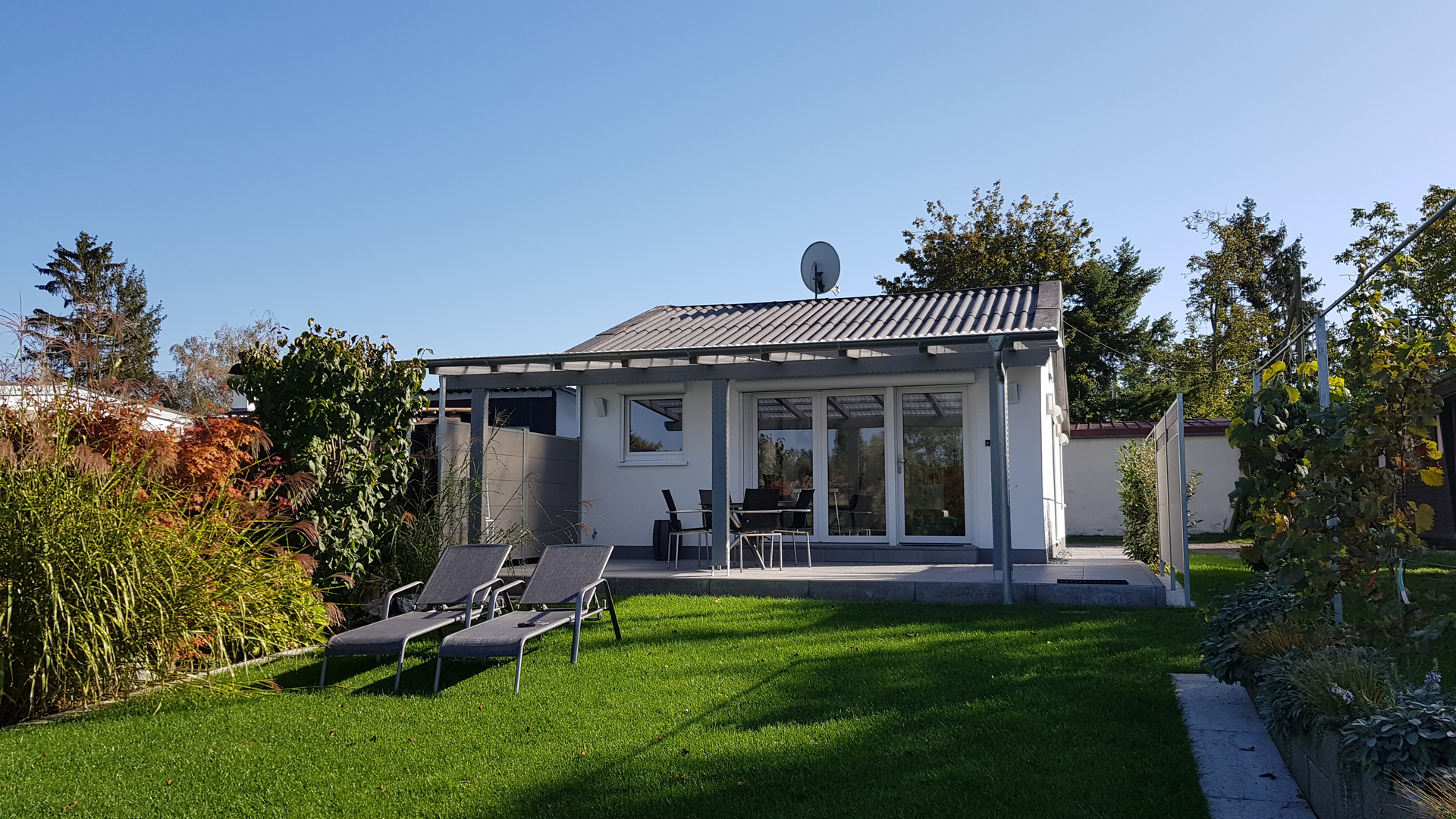Sehr komfortables Ferienhaus (45m² Wohnfläche) mit eigenem Grundstück (220 qm) am See für 2 erwachsene Personen. Teil eines größeren privaten Grundstücks an einem Badesee mit eigenem Zugang zum Wasser (Badesteg und Treppe) und Liegewiese. Große überdachte Terrasse vor Wohnzimmer und Küche. Helle, lichtdurchflutete Räume mit moderner Einrichtung. Komplett eingerichtete Küche (Spülmaschine; Kühlgefierkombi; Kaffeemaschine; alle notwendigen Küchenutensilien). Schlafzimmer mit Boxspringbett. Großzügiges Bad mit Dusche; Waschbecken, WC und separater Kammer mit Waschtrockner. Fußbodenheizung im gesamten Haus. Eigenes WLAN.