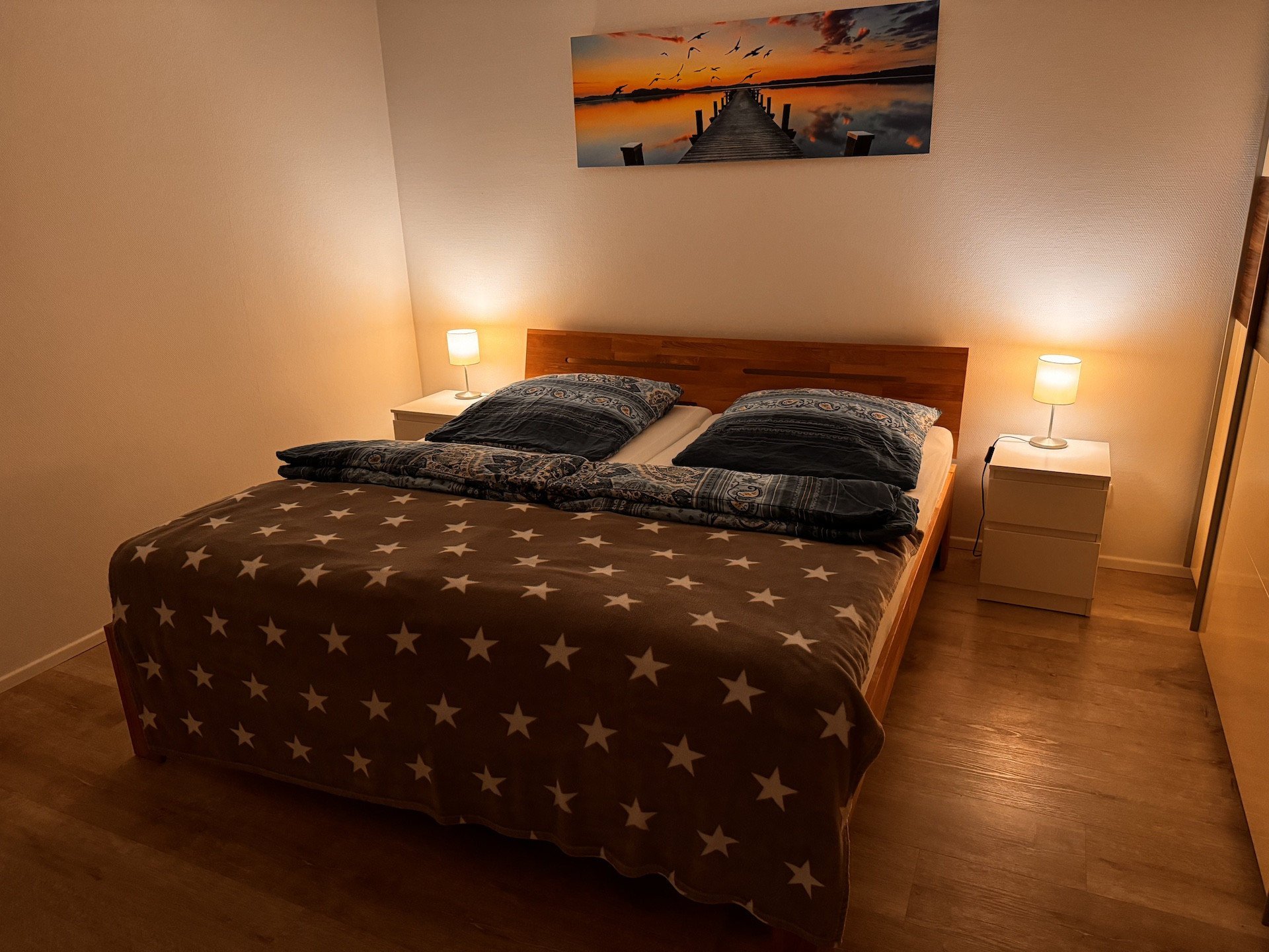 Im Schlafzimmer steht Ihnen ein großes, komfortables Doppelbett zur Verfügung.