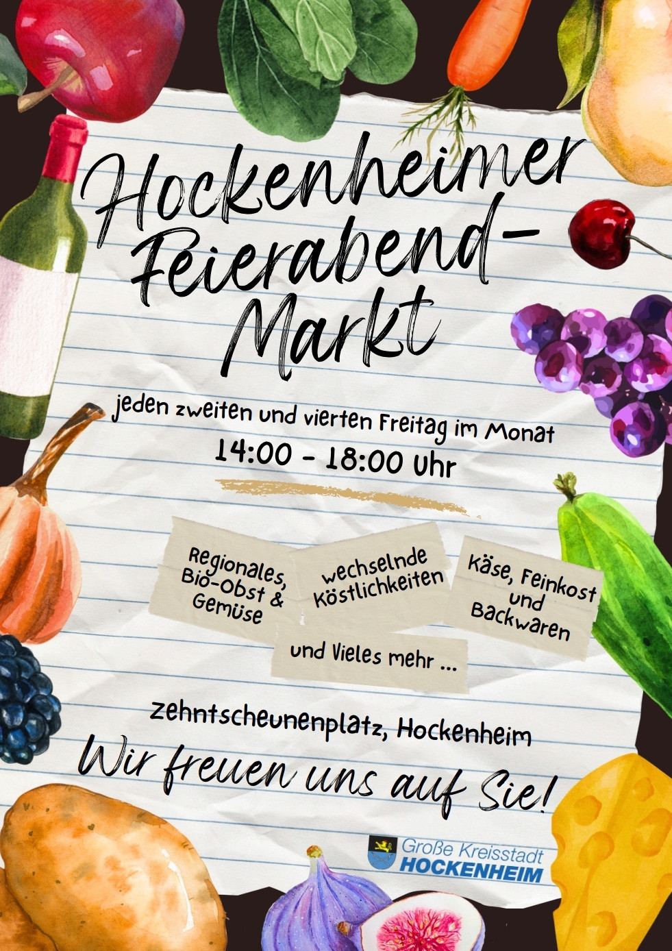 „Unsere Region hat viel zu bieten. Nicht nur landschaftlich, sondern auch kulinarisch. Besucherinnen und Besucher unseres Feierabendmarktes dürfen sich auf erstklassige Produkte regionaler Landwirte, leckere Backwaren sowie frisch zubereitete Leckereien für den kleinen und großen Hunger freuen. Ich freue mich sehr, dass unser Feierabendmarkt auch über die Grenzen von Hockenheim hinaus das Interesse einiger Händler geweckt hat und wir uns unter anderem auf schlesische Spezialitäten, Allgäuer Käse und Mediterrane Köstlichkeiten freuen dürfen. Ganz getreu nach meinem Motto: Geht nicht fort – kauft im Ort, besuchen Sie unseren Feierabendmarkt.“, so Oberbürgermeister Marcus Zeitler.