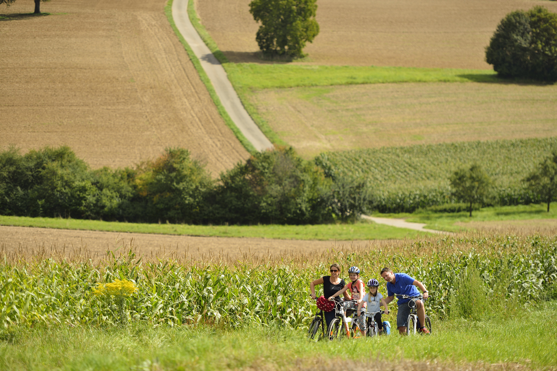 links in den landwirtschaftlichen Nutzweg und bergauf nach Weiler.